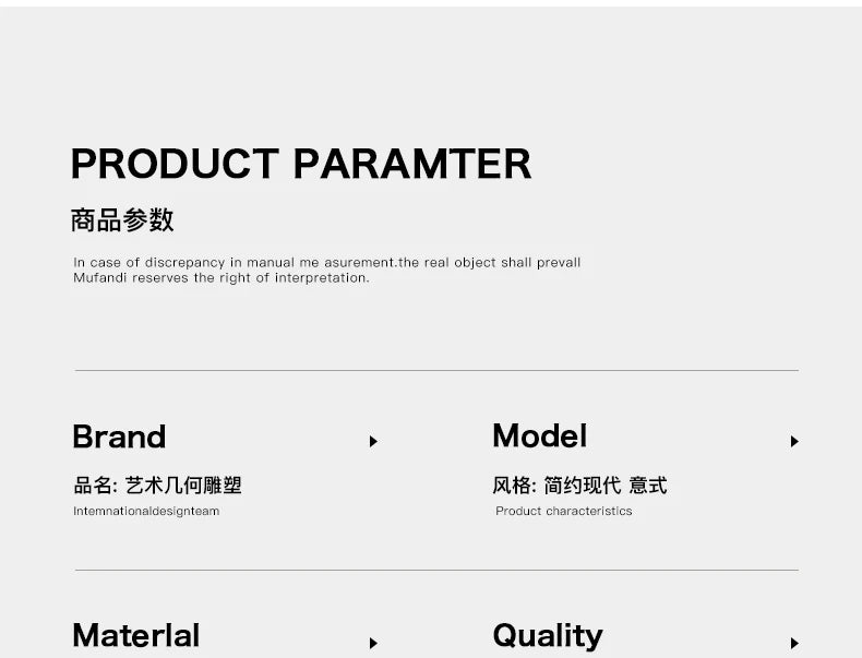 Home Decor Abstract Art Sculpture Large Floor Decoration Household Accessories Living Room Bedside Table Sofa Tea Table TV cabinet Decoration Housewarming Mall Gift